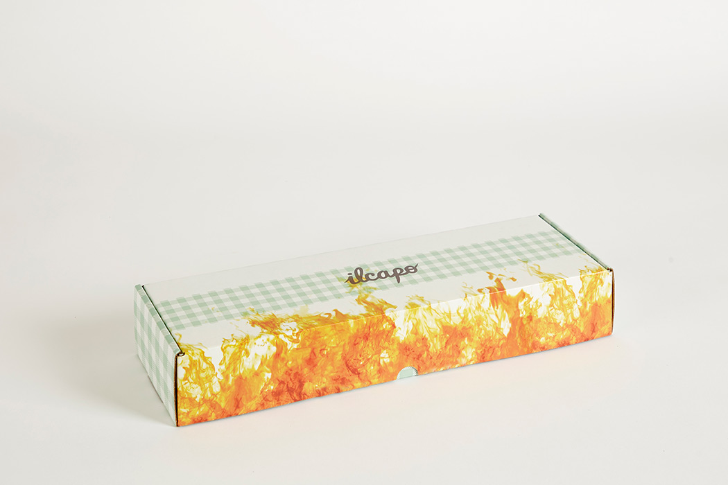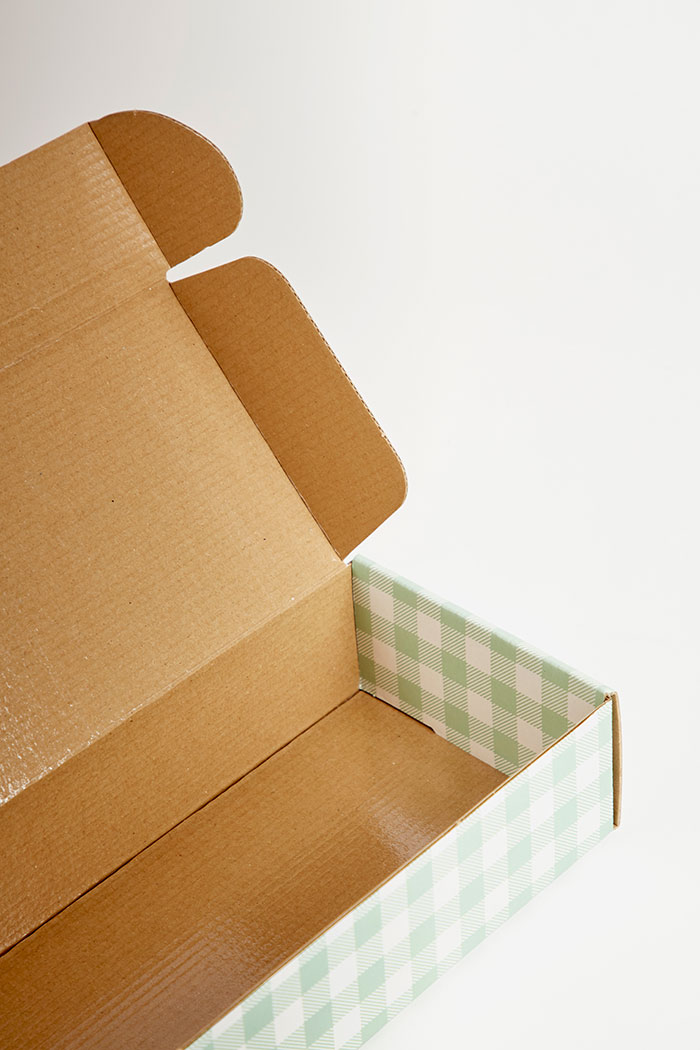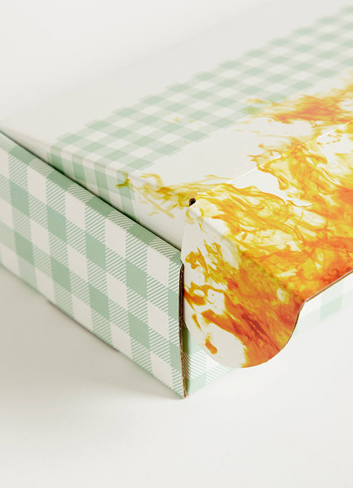 Estuche automontable con plastificado interior, destinado a comida.
