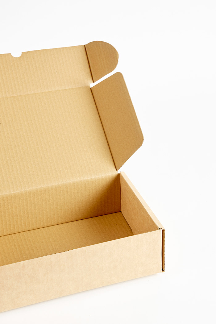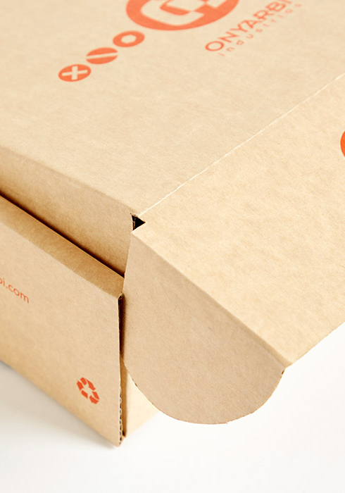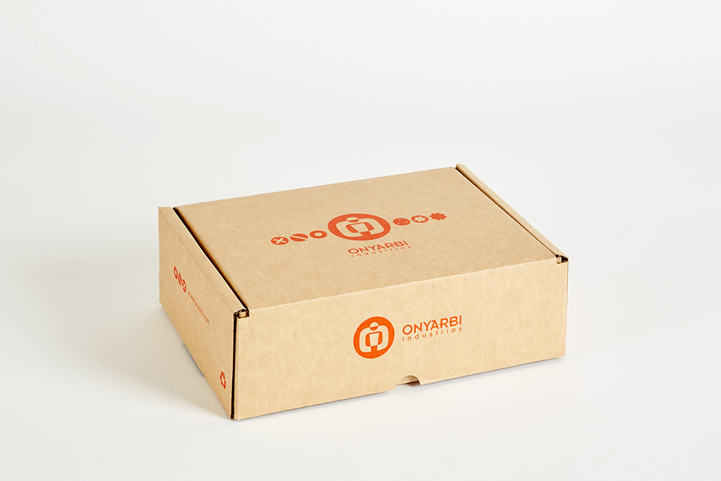 Estuche automontable, se conforma sin ningún tipo de pegado. Material Kraft.