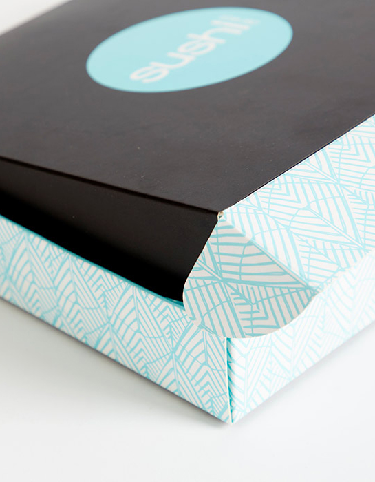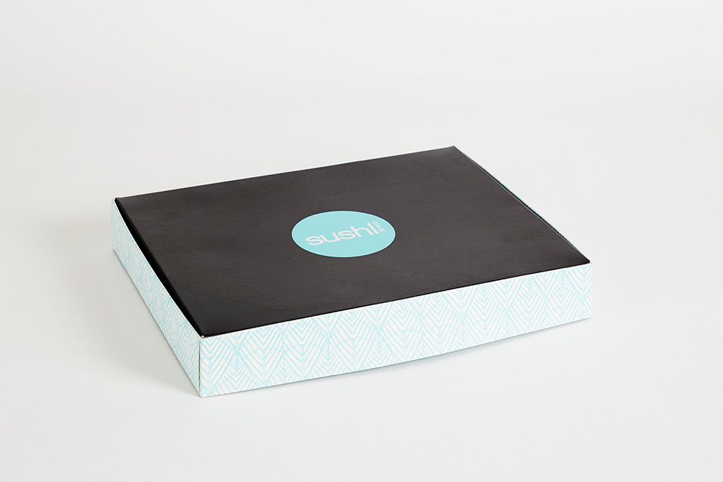 Estuche automontable, plastificado mate por las dos caras. Destinado a comida.