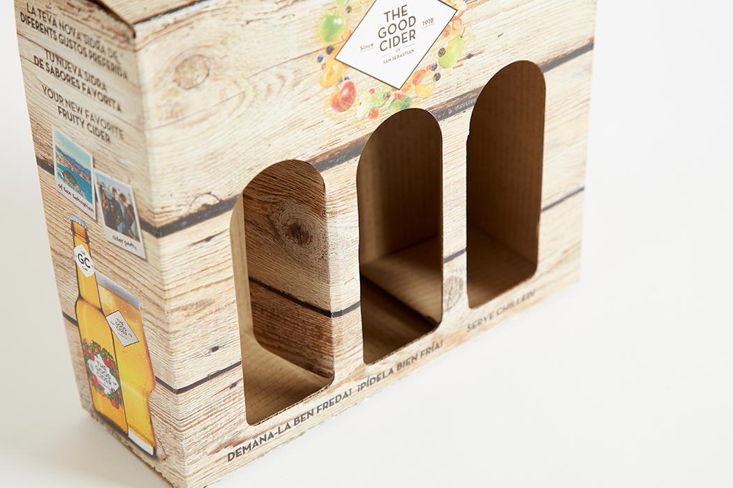 Estuche automontable para 3 botellines. Acabado en plastificado brillo.