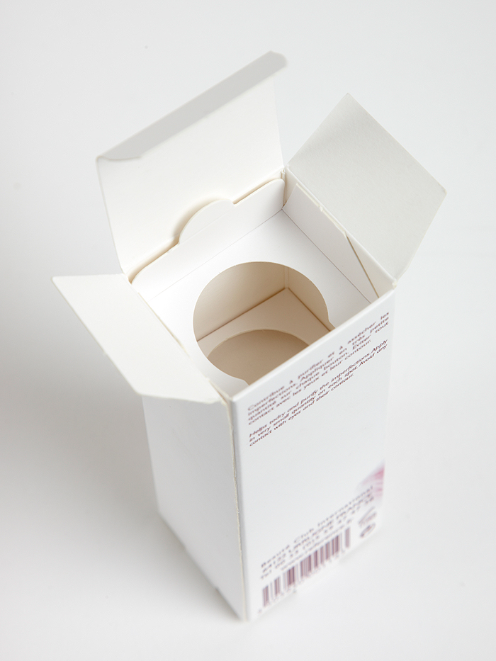 Estuche con un pegado lateral + un interior diseñado para reducir la movilidad del producto envasado garantizando su perfecto estado.