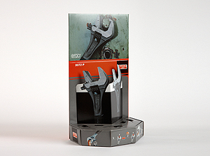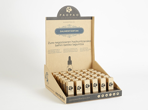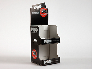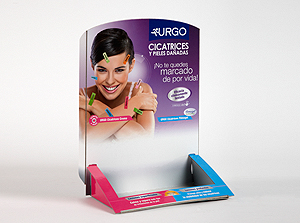 Expositor con frontón y varios cajones. Acabado en plastificado brillo.
